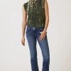 - Straight, flared fit