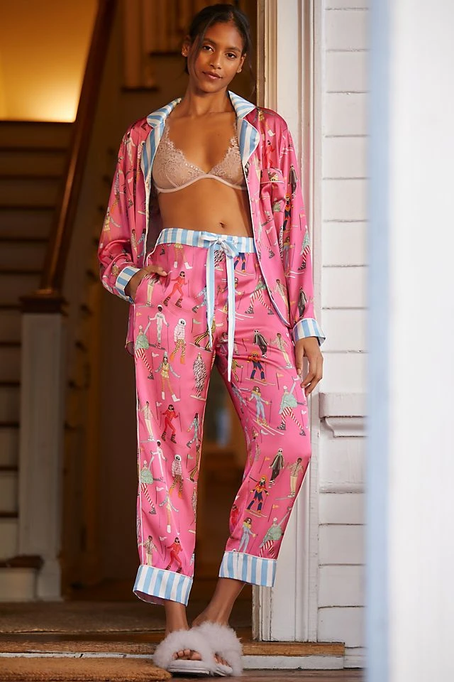 - Set includes buttondown top and pull-on pants
