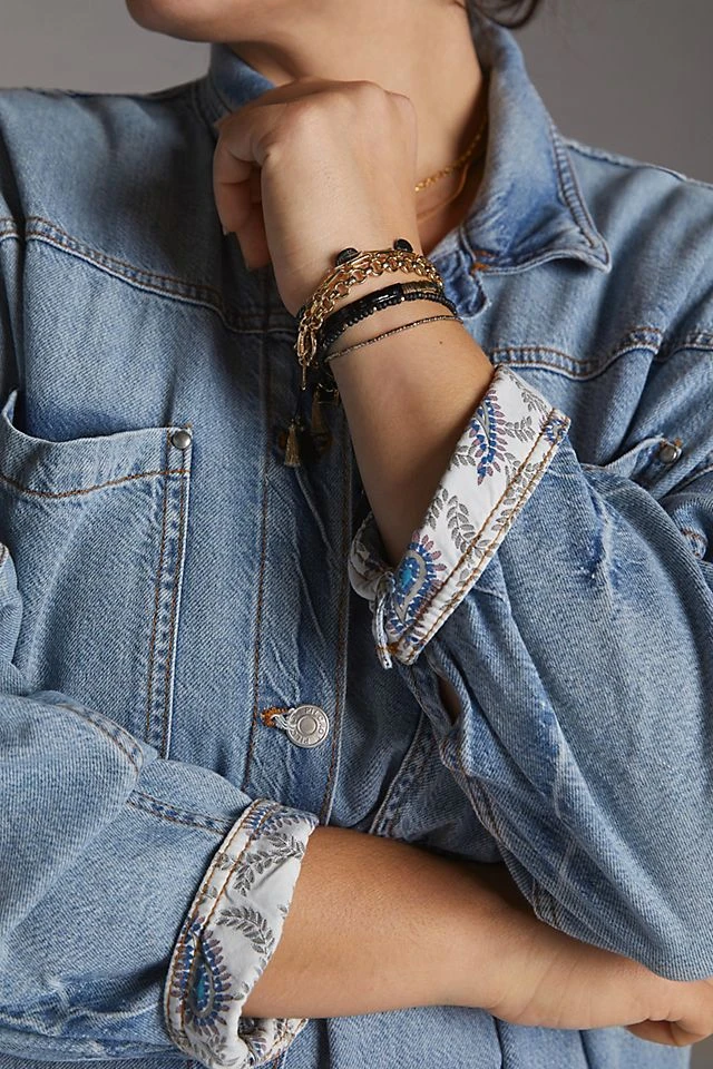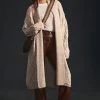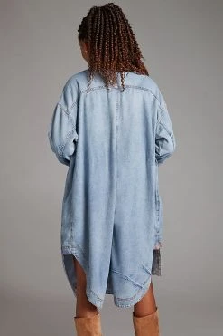 Offering a denim twist on a duster jacket silhouette, this piece brings dramatic flair to mini dresses and tailored trousers alike. Belt it at the waist and pair with high boots for a draped look you’ll want to wear on repeat all season long.