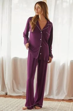 - Set includes pullover henley-style top and pull-on pants